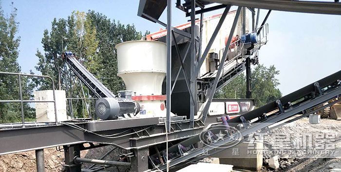 鹅卵石破碎现场圆锥破碎机特别适合用来破碎卵石